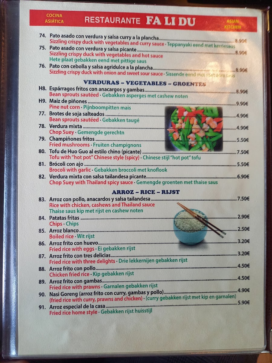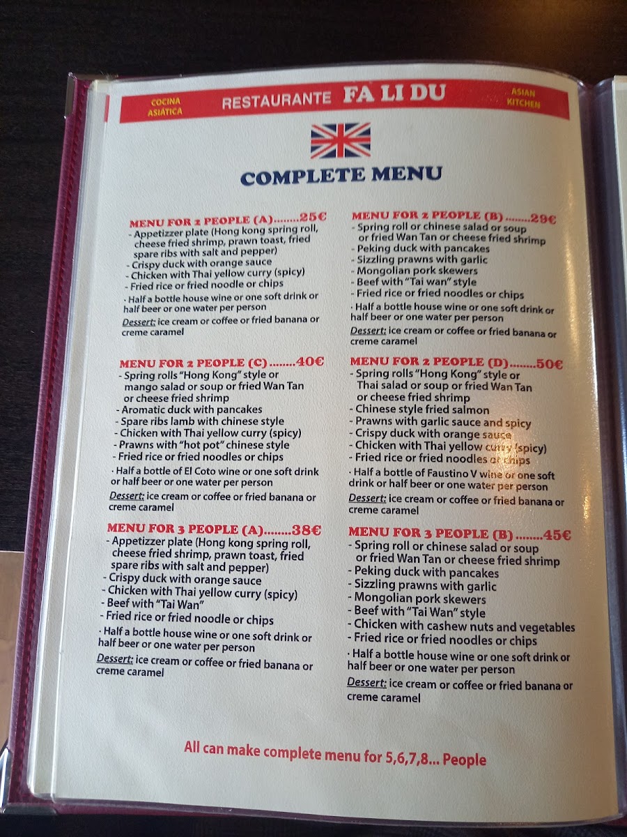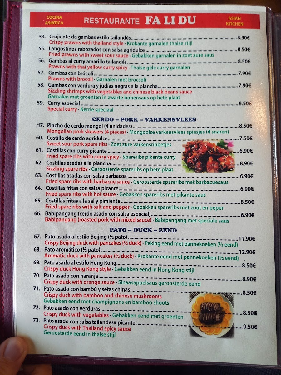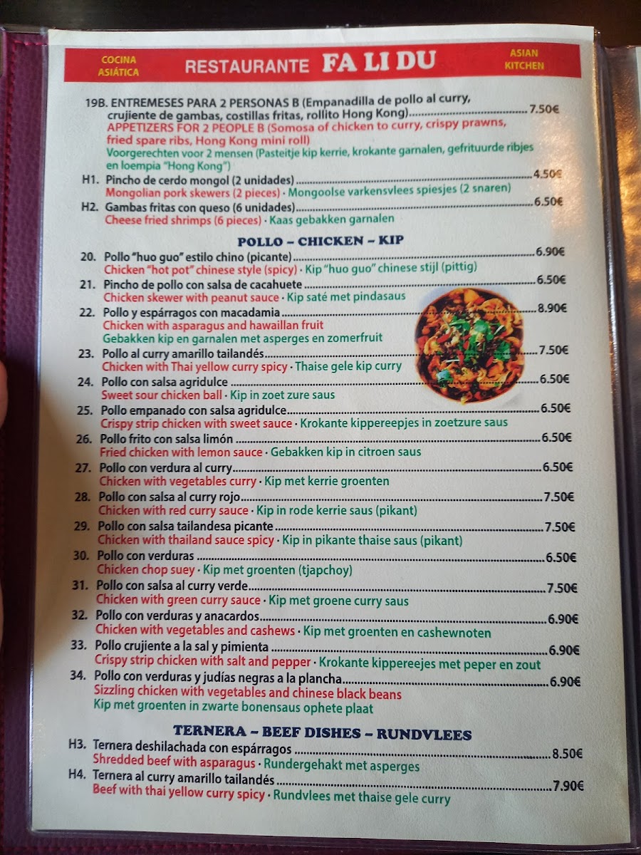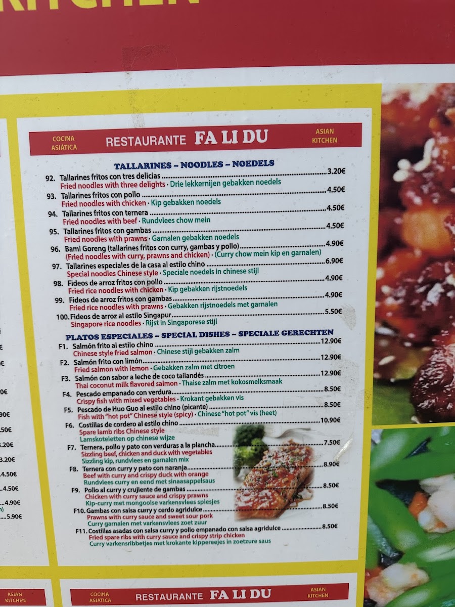 Fa Li Du Menu